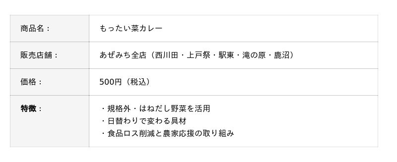 農産直売所あぜみち(運営:株式会社グリーンデイズ/本社:栃木県宇都宮市)が展開する惣菜ブランド「あぜでり」から、新商品『もったい菜カレー』が登場いたしました。