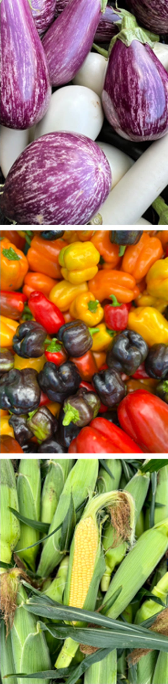 とうもろこし(黄色、白色)、おくら、じゃがいも、カブ、人参、大根、ネギ、 にんにく、玉ねぎ、ピーマン、なす、パプリカ、ズッキーニ、甘長唐辛子、ししとう、つるむらさき、きゅうり、パパイヤ他