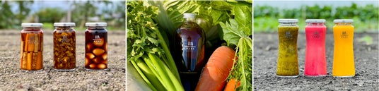 栽培した野菜を使った6次加工商品は、野菜を通年楽しんでいただけるだけでなく、野菜の命と美味しさを延命し、フードロス削減にも寄与します。UBオリジナルピクルス、クラフトジンジャーシロップ、おろしポン酢・焼きネギポン酢、野菜ドレッシング、スパイスカレーなどのオリジナル商品を通して、地球、環境、そしてヒトにやさしい「美味しい」を拡充しています。