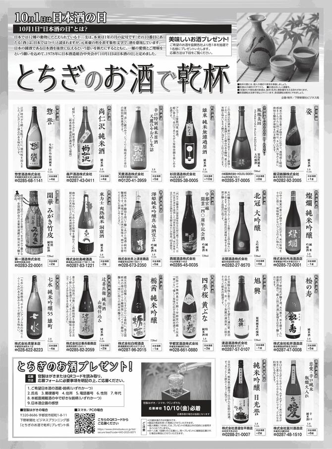 今回、ご希望のお酒を協賛各社より各1本を抽選で1名様にプレゼントします。