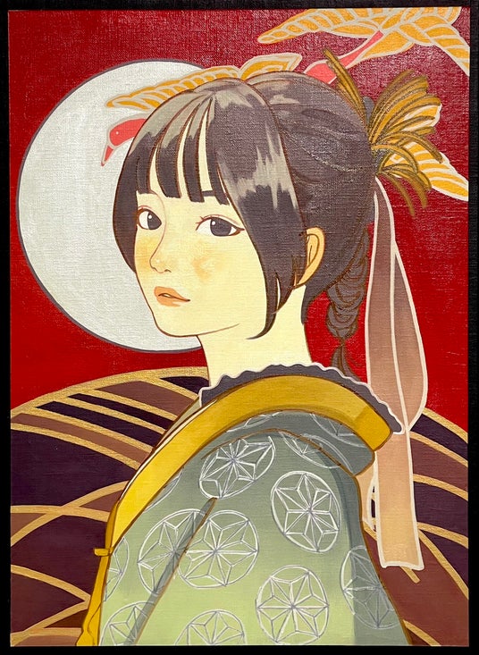 1999年生まれ、横浜市在住のアーティスト。浮世絵の流れを汲む美人画のデフォルメ表現をアニメ調に変換し、そこへ1800年代中頃~1900年代初頭にジャポニズムの影響を受けて描かれた西洋絵画の色彩を融合させるスタイルで“今の美人画”を描き世界から見る「日本のアート」の文脈に、新たな価値観と流れを生み出すことを試みている。