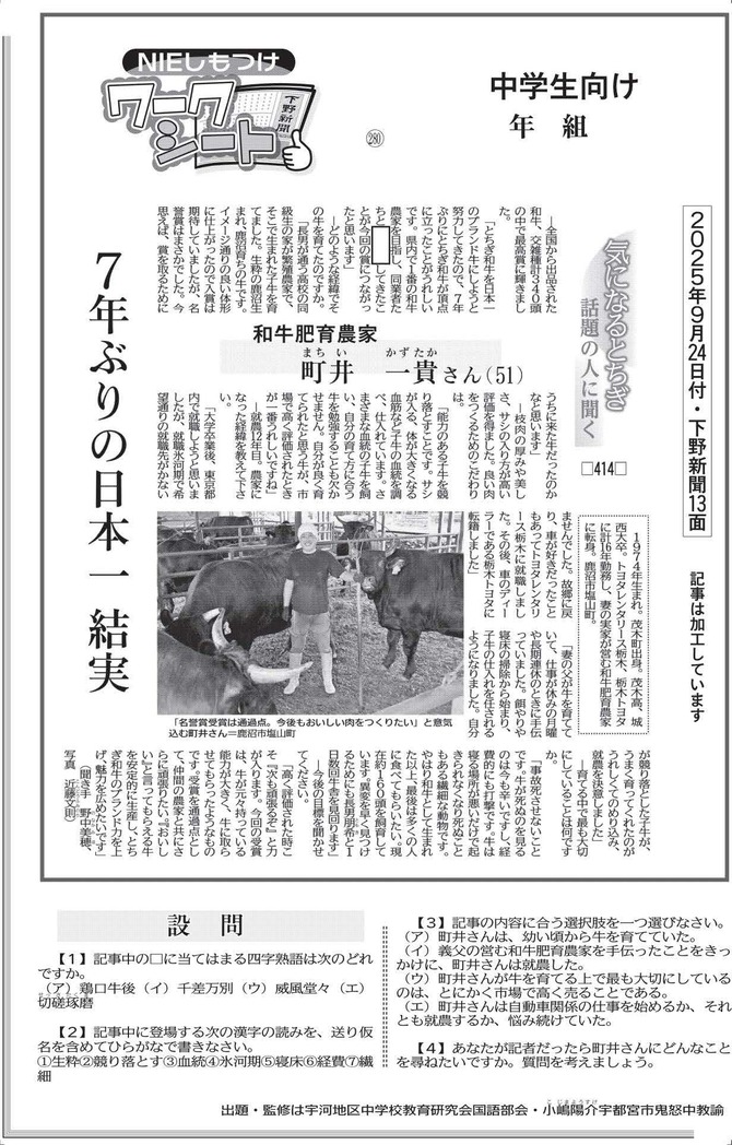 下野新聞の記事を使って社会への関心や読解力を高める「ワークシート」をスタートします。出題するのは、県小・中・高校教育研究会の国語・社会部会に所属する教員たち。ぜひ挑戦してください。