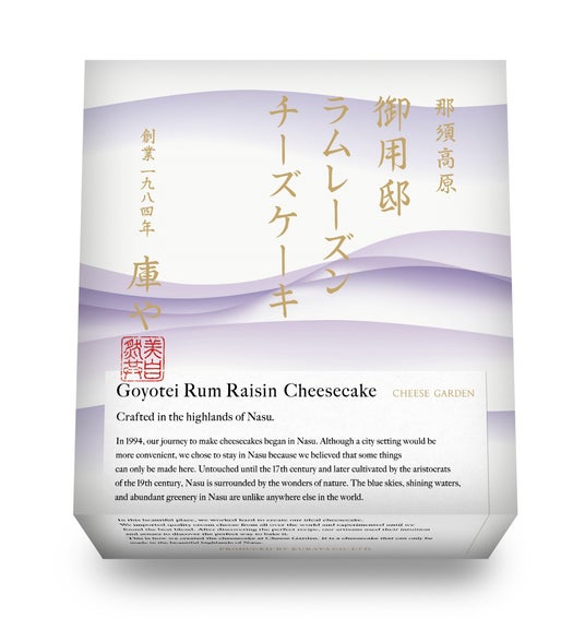 『御用邸ラムレーズンチーズケーキ』は、2023年初冬に登場した、チーズガーデンでは珍しいお酒を使用した大人の味わいが楽しめる商品です。ラムの芳醇な香りとレーズンの味わいが残るようにしっとりと焼き上げた、これからの季節にぴったりのベイクドチーズケーキです。