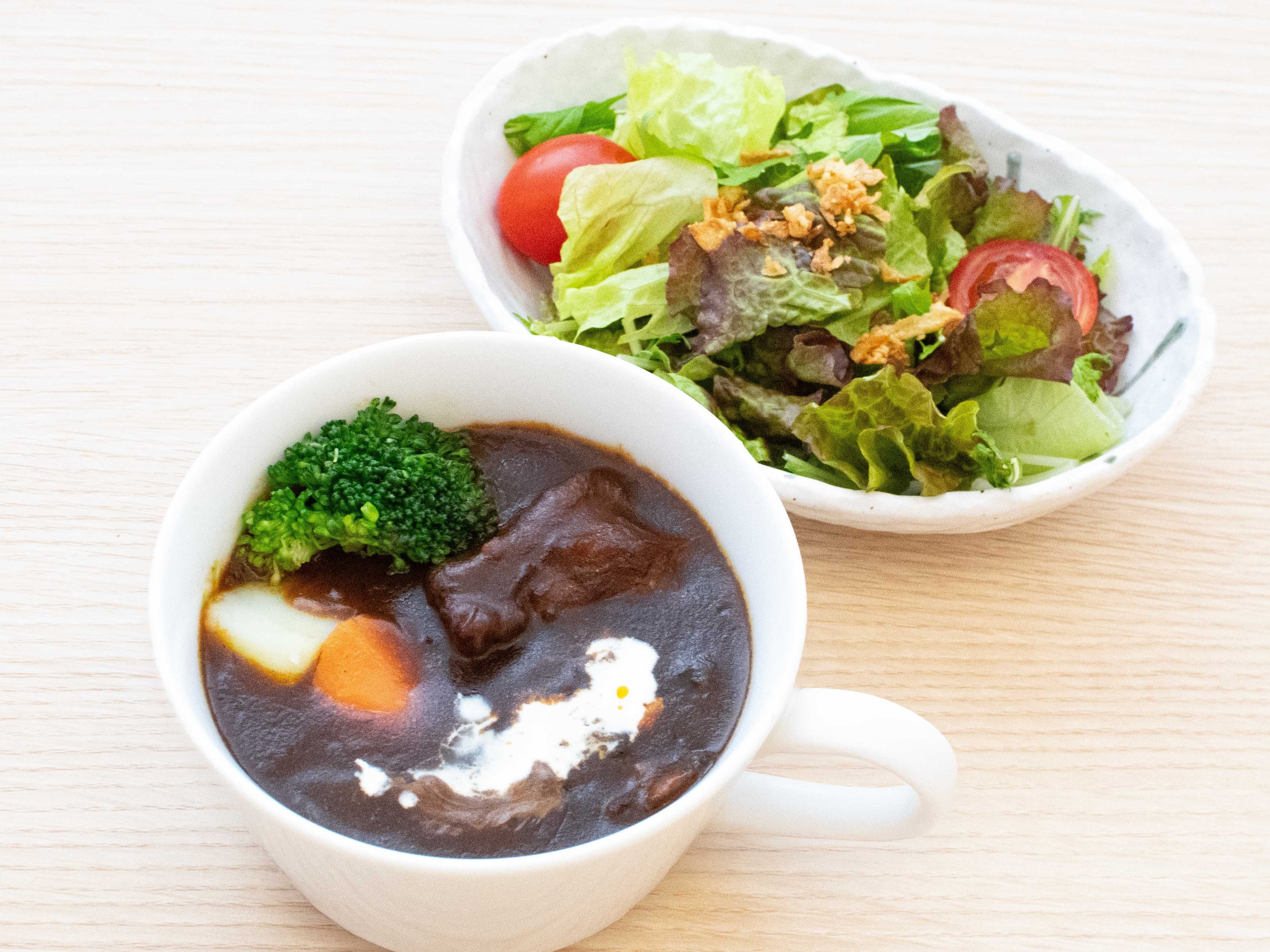 ■シチューセット(右:牛たんシチュー・ミニサラダ付き) 700円