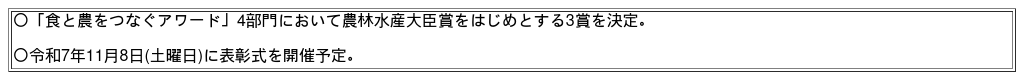 ~食と農をつなぐ優良な取組を行う企業・団体等を表彰~