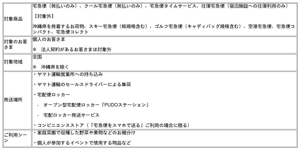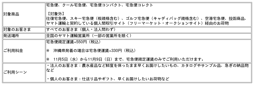 ※ 11月5日(水)から11月9日(日)まで、宅急便規定運賃のみでご利用いただけます。