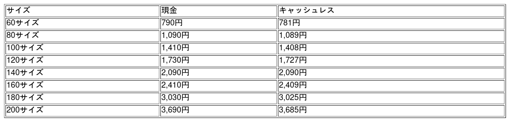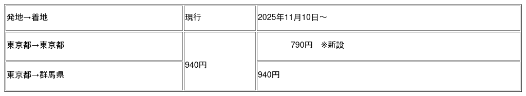 (例)60サイズの荷物を東京都から東京都・群馬県に送る場合(現金決済、税込)