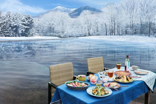 8,500平方メートルもの広大な田んぼの中央に、1日1組限定の特別席が登場します。寒い冬の屋外でも暖かく過ごせるよう、ドーム型のテントを設置。テントの外壁は透明な素材でできているため、田んぼや雪化粧をした那須連山の景色を楽しみながら、暖かい環境で料理を堪能できます。冬の澄んだ空気と贅沢な眺めを独占しながら、ゆったりとブランチを楽しむことができるプライベートな空間です。