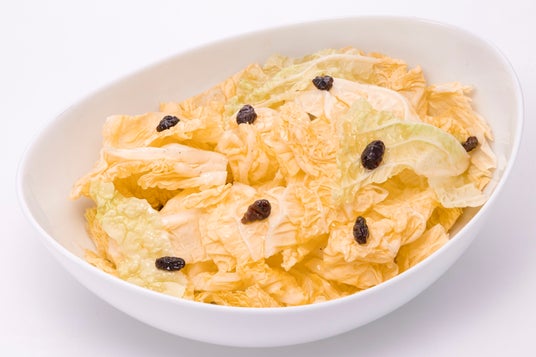 甘みがあるオレンジ白菜はオリーブオイルと塩胡椒でシンプルな味わいにし、アクセントにレーズンを加えました。※国産野菜を使用