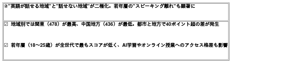 日本国内でも都市と地方で40ポイント超の差が発生し、"英語格差"が顕著に。