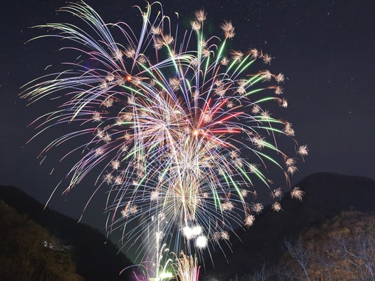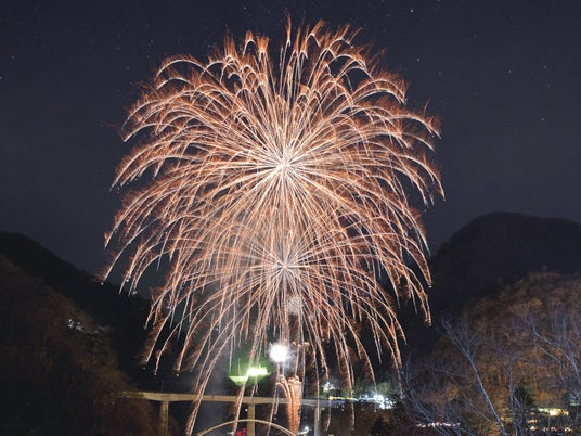 川治温泉街では冬には珍しい花火のイベント『川治温泉仕掛け花火「流彩花」』を開催。