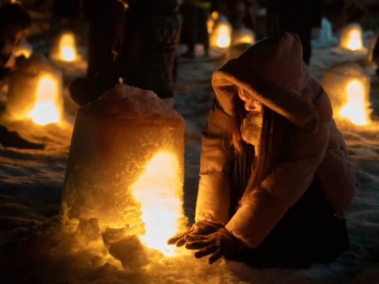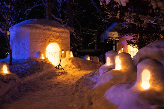 夜になると、真っ白な雪の大地にぽつりぽつりとあたたかな光が浮かび上がり、訪れる人を優しく包み込むような非日常の絶景が広がります。揺らめく炎はどこか懐かしく、眺めているだけで心が落ち着く癒しの時間に。