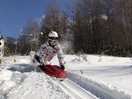 ソリのような専用ボードの上にうつ伏せになり、ハンドルを握って体重移動だけでコントロールして進むエアボード。ソリに乗るような感覚で乗りこなすことが出来るため、スキーやスノーボードに苦手意識のある方でも、気軽に挑戦しやすい所が魅力です。雪面を軽やかに駆けるスピード感と浮遊感は、爽快感バツグン!