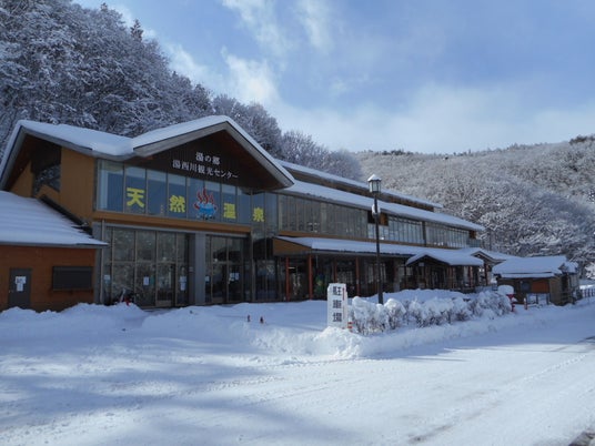 ▲雪の中に佇む「道の駅湯西川」