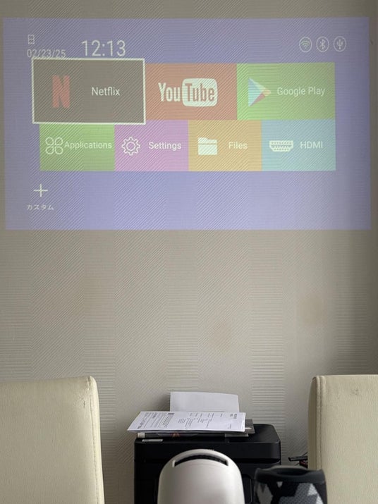 「寝室の傾いた机の上に置いても、自動台形補正で綺麗な画面になる!オートフォーカスも動くたびに調整してくれるから、寝転がってドラマを見て眠るのが毎日の習慣になりました」