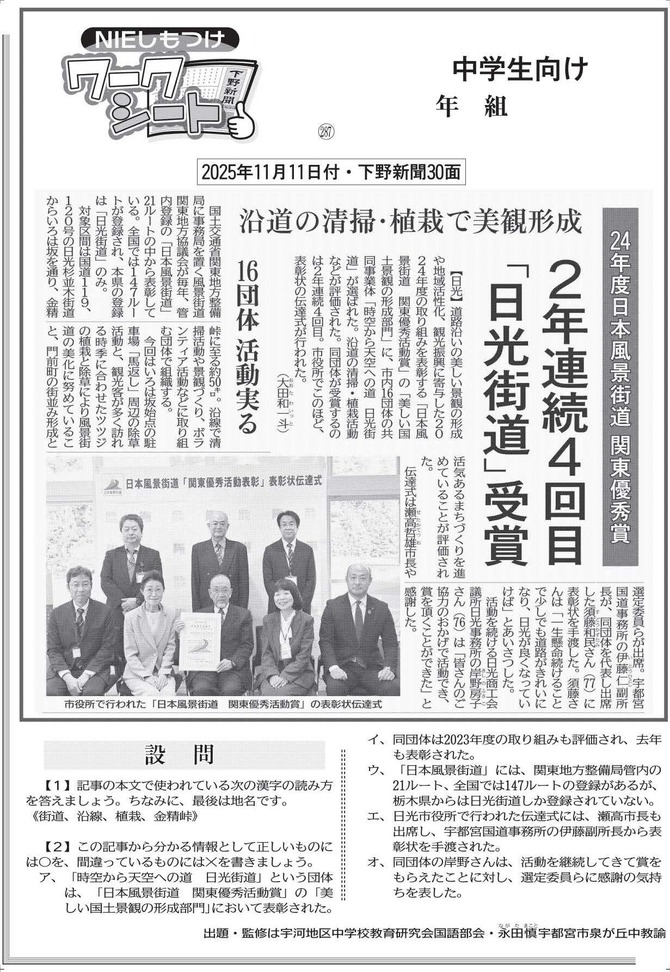 下野新聞の記事を使って社会への関心や読解力を高める「ワークシート」をスタートします。出題するのは、県小・中・高校教育研究会の国語・社会部会に所属する教員たち。ぜひ挑戦してください。