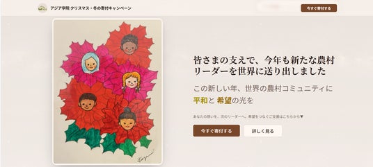 ウィンター寄付キャンペーンページで共有した、卒業生たちからの感謝を伝えるメッセージに加え、メインイラストをクリスマスから新しい年バージョンにアップデートしました。