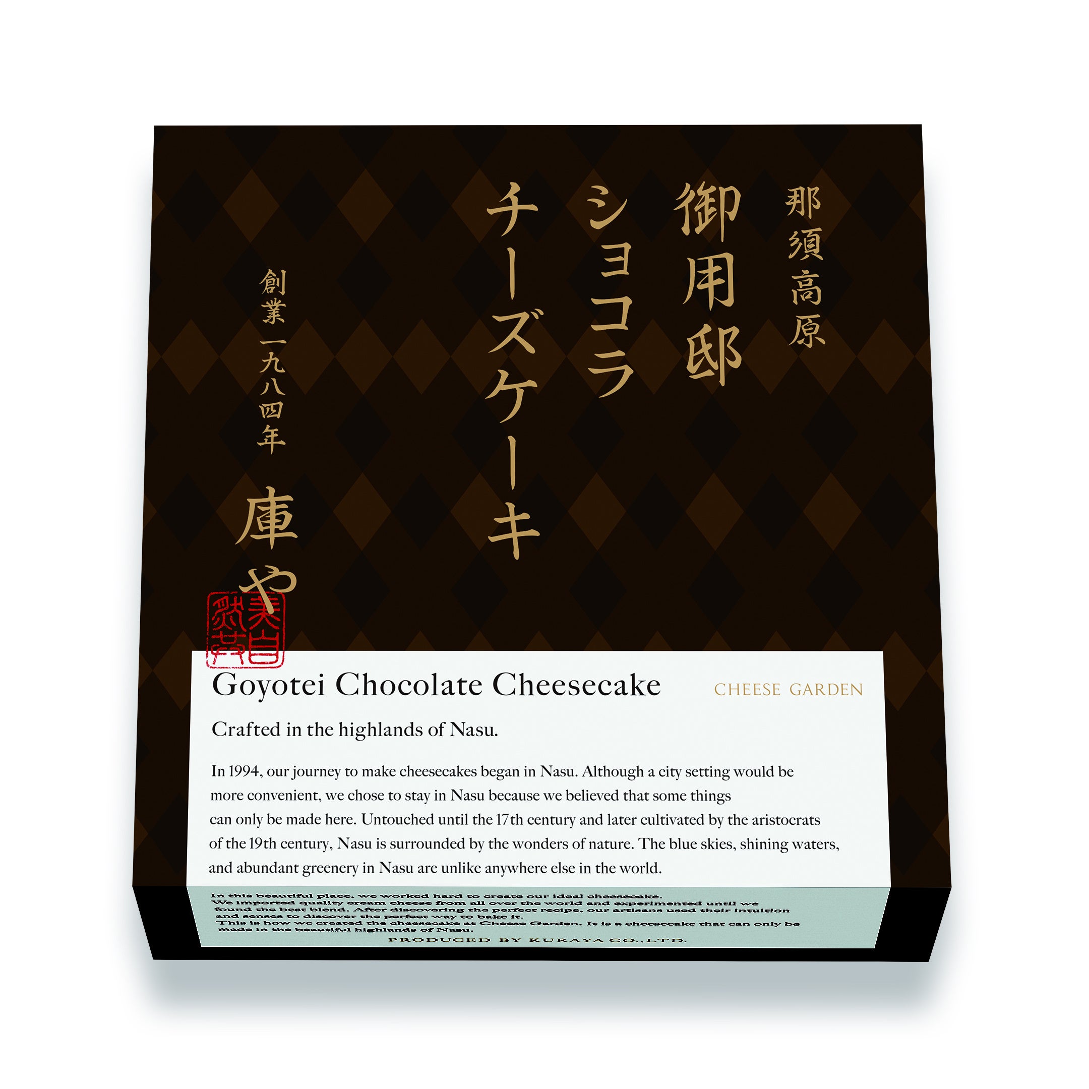 詳しくはコチラ:香ばしい香りや心地よい苦味、なめらかでコクのある味わい『御用邸ショコラチーズケーキ』