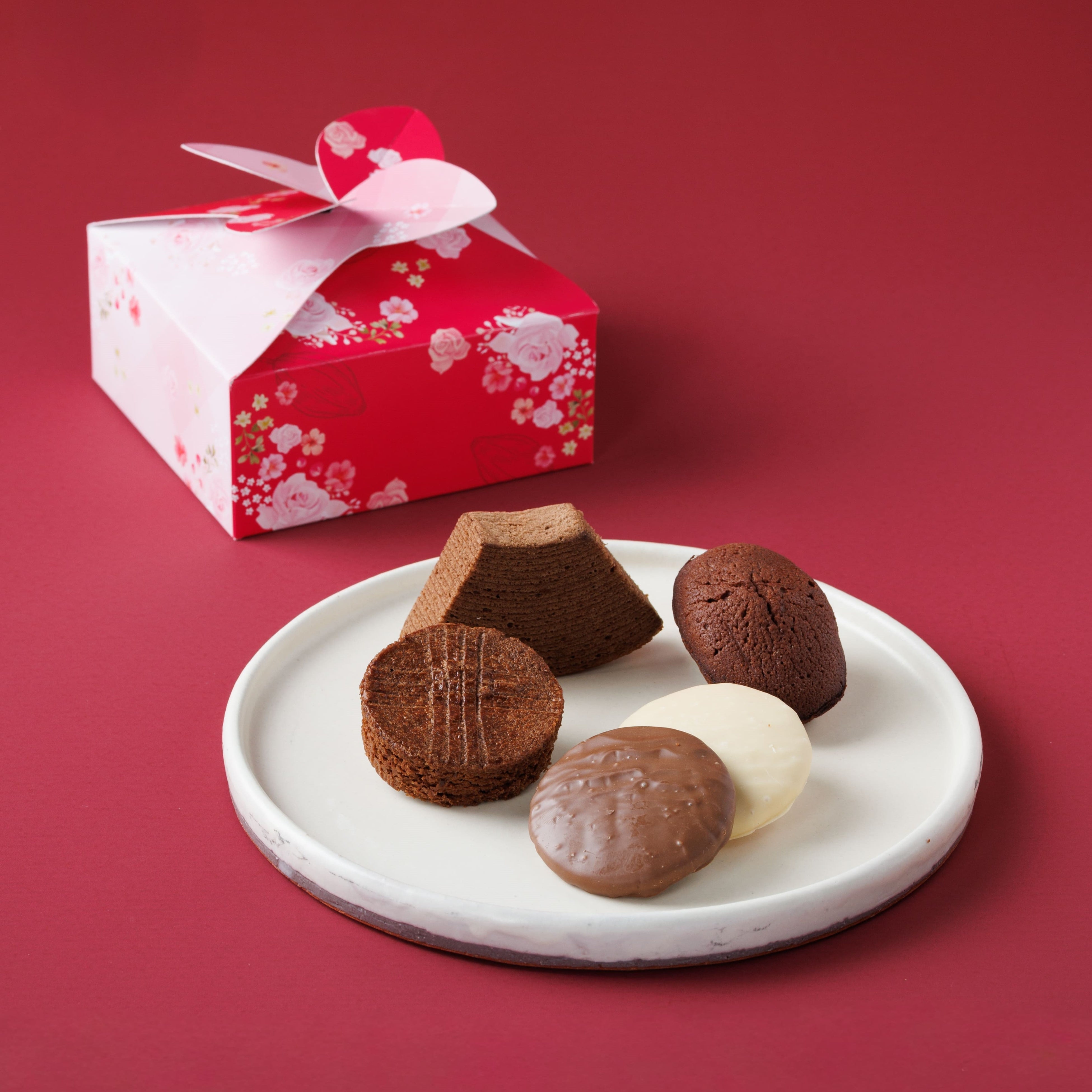 セット内容:ショコラフィナンシェ1個/ショコラチーズバウム1個/ガレットショコラ1枚/御用邸ホワイトショコラチーズクッキー1枚/御用邸ミルクショコラチーズクッキー1枚