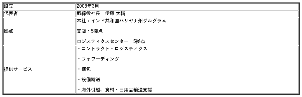 ヤマトロジスティクスインド株式会社