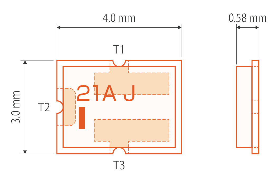 - 二次保護用の表面実装型ヒューズとしては世界最薄となる4.0mm、縦幅3.0mm、厚み0.58mmの製品サイズで、当社従来品比で31%の薄型化を実現