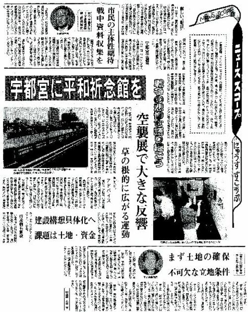 これまで下野新聞が紹介した記事、写真は忘れられないものばかり。一つ選ぶとすれば1985年8月の「ニューススコープ」です。会の活動、フォローし続けてきた記者の方々、全下野新聞労働組合に結集した組合員、社の皆さんの支えがあったからこそ、今日まで活動を続けてこられた原点となる記事でした。(1985年8月18日付)