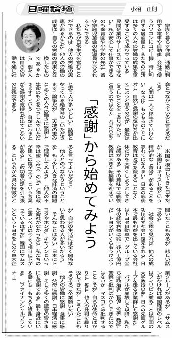 幸せな人生を送るには「感謝する心を持つこと」が絶対条件だと確信しています。そして日常生活は「他人の労働の恩恵があるから」だと思っていました。それらを見事に文章化した記事が掲載されました。