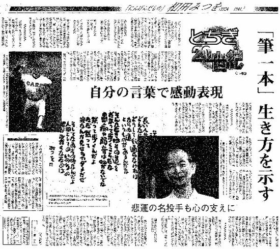 故相田(あいだ)みつをさんの書と言葉に、いつも元気を頂いています。一方、昨年は日本人メジャーリーガーの活躍で野球が盛り上がりました。その野球と相田さんの一ドラマをテーマにしたのが「とちぎ20世紀」の相田さんの記事です。