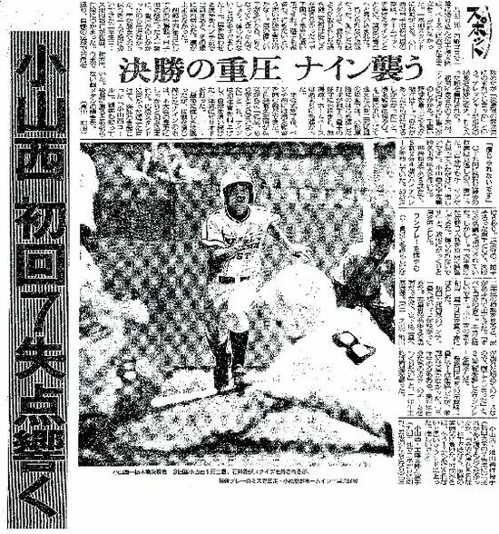 チームは決勝に駒を進めたものの、初回に大量点を奪われ力尽きました。重苦しい気持ちで翌日の紙面を開くと、そこにはホームを目がけ突進する息子の姿が。敗者をたたえる感動の記事も添えられていました。