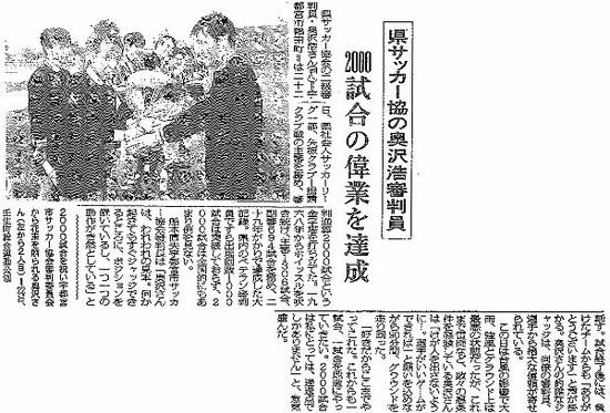 20歳からサッカーの審判を務めてきた私にとって忘れられない記事は1996年、審判2000試合を達成した時の記事です。台風のため最悪の状態での試合となったため、忘れられません。他にも節目の試合は下野新聞記者諸氏に取材していただき、それが本県サッカー審判界の地位向上に大いに貢献してくれました。