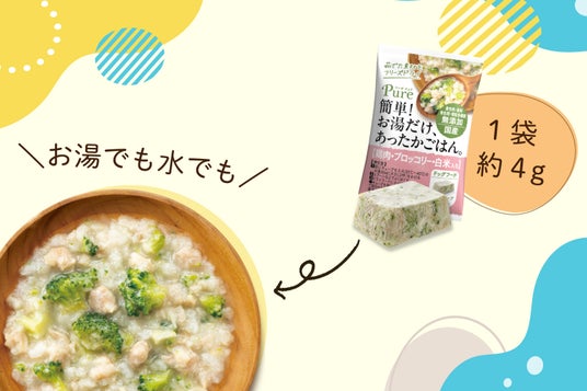 1袋約4gと軽量で、少量のお水(またはお湯でもOK)で戻すことができるピュアキューブは、防災にも役立ちます。