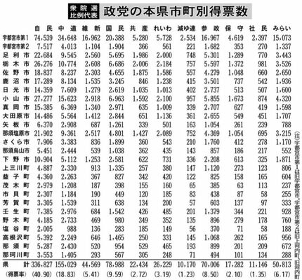 県内の衆院選比例代表は9日未明、開票が確定した。政党別得票率は、最多の自民党が前回の2024年衆院選に比べ10・7ポイント増の40・9%に達し、大勝した県内小選挙区同様、圧倒的な力を見せた。続く中道改革連合は18・8%にとどまり、同党を結成した立憲民主党と公明党の前回の合計(35・7%)から半減。小選挙区との重複立候補者の復活を阻む要因となった。