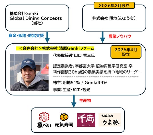 レストランチェーンの運営を手がける株式会社Genki Global Dining Concepts(本社:東京都台東区 代表取締役 社長執行役員 藤尾益造、以下「当社」)は、米の安定供給と地域農業の持続性確保を目的に、新たに農業法人「株式会社 清原Genkiファーム」を2026年4月1日に設立いたします。