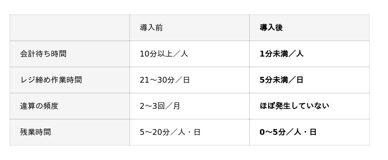 導入して一番大きかったのは、レジ締め業務の負担がほとんどなくなったことです。以前は毎日確認作業が必要で、金額差異がないかどうかに気を遣う時間がありました。