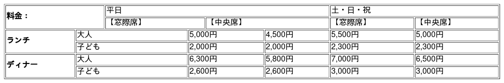 ※料金はサービス料(10 %)および税金を含みます。 ※子ども料金は5~12歳対象です。