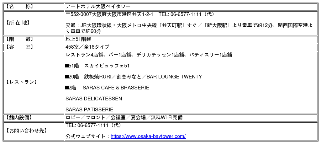 ― 「アートホテル大阪ベイタワー」概要 ―