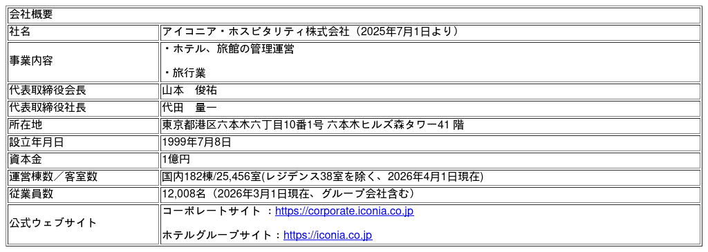 アイコニア・ホスピタリティ株式会社