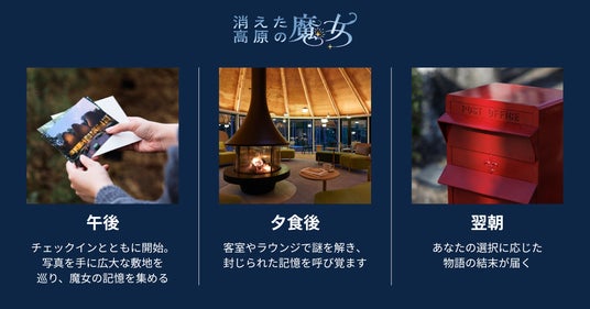 あなたの選択が物語の結末を変える、宿泊型の物語体験です。舞台は、東京ドーム約3個分の広大な敷地を有する、高原のアグリツーリズモリゾート「リゾナーレ那須」。宿泊者は一通の手紙と写真を手に、かつてこの場所にいた「魔女」の真相を探る旅に出ます。