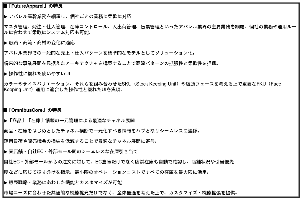 独自開発の「FutureApparel」 「OmnibusCore」を導入し全面稼働