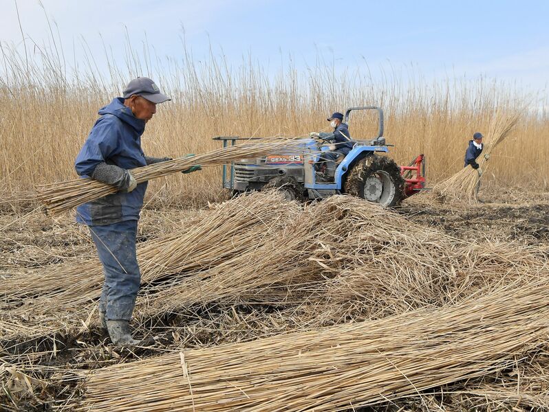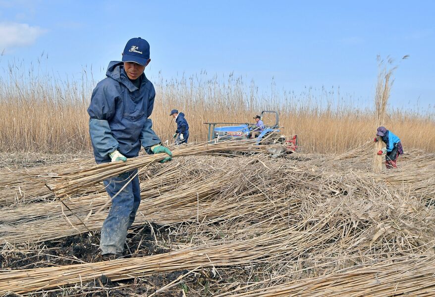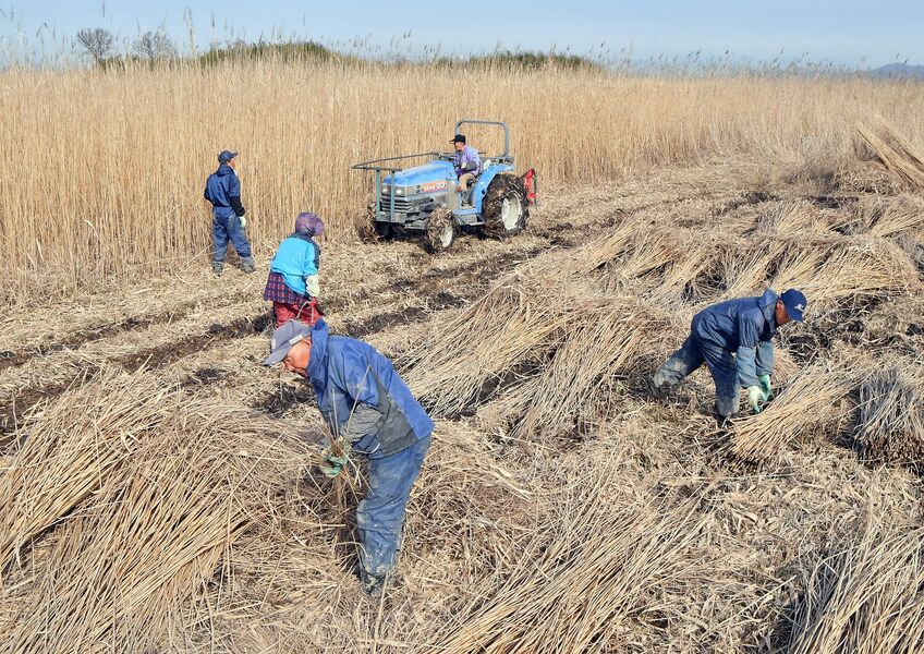 渡良瀬遊水地でヨシ刈り最盛 栃木