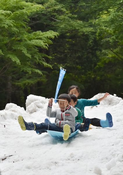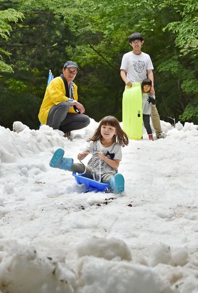 天然雪で「夏の雪あそび」開催 日光 奥鬼怒