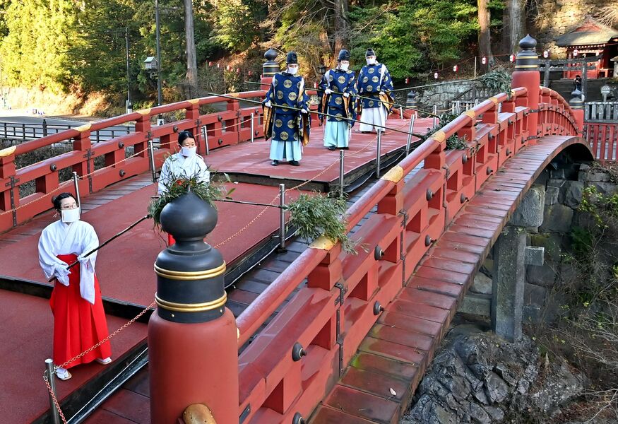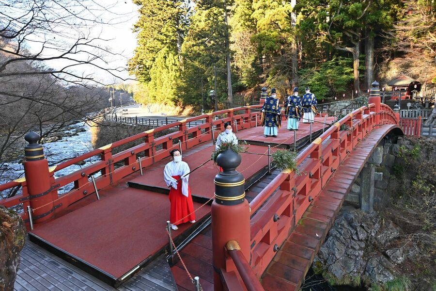 日光二荒山神社の神橋ですす払い
