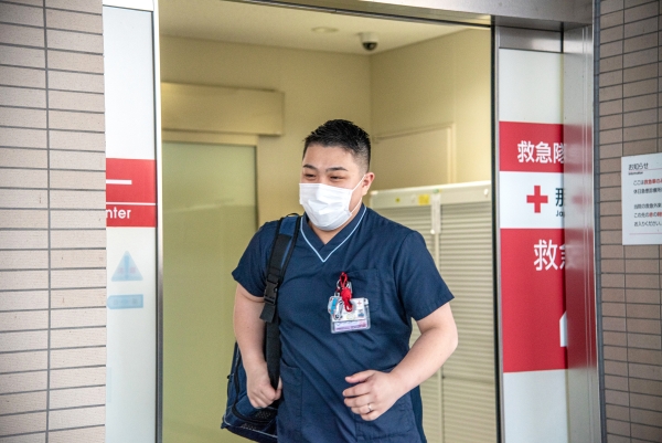 母も看護師で、子どもの頃からその背中を見て育ったため自然と看護師になる道に進んでいました。今では病院の勤務は11年目になります。外科病棟の勤務からスタートして、希望がかない7年前に救急救命センターに配属となりました。救急車や外来で来院する患者のトリアージ、処置などの救急対応をしています。また、プレホスピタルケア(病院前救護)として、ドクターカーへの同行も担当しています。交通事故や急病人が発生した場合など、緊急要請を受けたら現場に直行し、医師とともに処置を行います。救命救急は毎日症例が異なることから、様々な経験ができるので、スキルアップを望む看護師には適した職場だと思います。一方で、人の生死に関わる緊迫した場面に直面することも多いので、惨事ストレスを抱えやすいのも事実です。個人でストレスを抱えないよう、業務の合間に時間を作って、看護師同士でリフレクションを行い、心のケアに努めています。