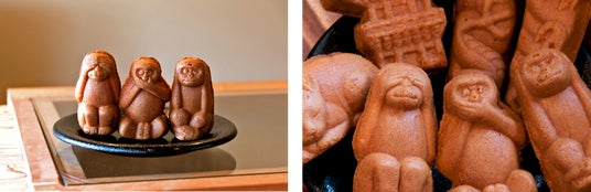 日光彫の作家でもあるご主人が「食べる彫刻」を目指し、金型の原型から作られた人形焼き。