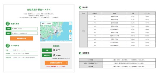 明確な料金体系を持ち、オンラインで簡単に自動運賃見積もりを行う機能を提供しています。お客様はいつでも輸送コストを簡単に確認でき、適切な予算での輸送計画を立てることが可能です。透明性のある料金表と迅速な見積もり機能で、安心してサービスをご利用いただけます。詳細はこちら。