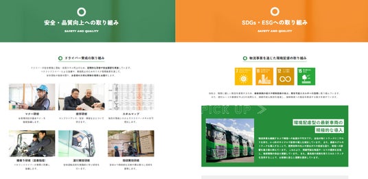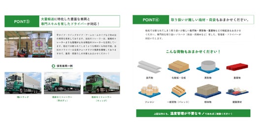 新しいホームページでは、サービスメニューや当社の輸送サービスの要でもある、トレーラー輸送のメリットや詳細をわかりやすく表現しています。また、チャーター便・混載便それぞれの「運賃表」や「自動見積システム」なども公開しており、ホームページに訪れた荷主企業の方へのお役立ち情報を公開しています。