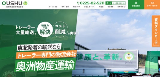 奥洲物産運輸株式会社は、トレーラー輸送をはじめとする多彩な物流サービスをより分かりやすくお届けするため、ホームページを大幅リニューアル!オンラインでの自動運賃見積りや、サービス紹介も充実。