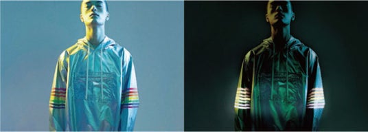 「Midorikawa」は、クラシカルなエレガントさを保ちながらも斬新さをミックスするスタイルが特徴的なアパレルブランドです。薄手かつ軽量という同シリーズならではの特徴により、反射材がもつ「暗闇で光る布」というビジュアルのインパクトを活かしながらも洗練されたシルエットを実現できるとして、全身が反射材という新たな試みのアウターウェアへの採用に至りました。