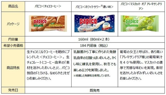 パピコは1974年の発売以来長く愛されてきたフローズンスムージーです。なめらかな食感と冷たさで心身をリフレッシュさせることで、 人々の前向きな気持ちをサポートしたい、という想いで活動しています。<チョココーヒー>をはじめとしたなめらか食感が楽しめる商品や、ひんやり爽やかで濃厚なフルーツ感を楽しめる商品など、フレーバーによって素材や食感にこだわっていることも大きな特長です。