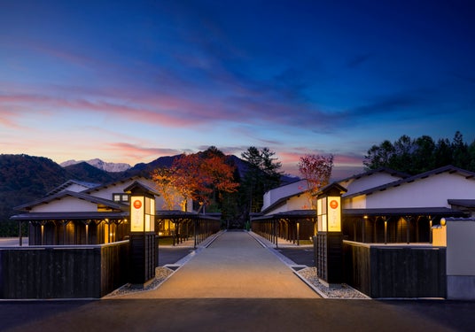 「信州の贅沢な田舎体感」をコンセプトにした温泉旅館。雪国のアーケード「雁木(がんぎ)」に沿って客室や温泉棟が建ち並び、囲炉裏でのもてなし、冬にはかまくらやかんじきでの雪遊びなど、信州の文化に触れることができます。大浴場では四季折々の景色を愛でながら湯浴みを楽しめます。